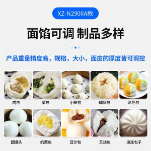 XZ-N290IIA卷面式黄色网站萝卜视频,压面成型面皮,卷面方式包馅。仿手工捏花、一次成型、表面光滑、口感劲道。面馅可调、制品多样。产品重量精度高,规格,大小,面皮的厚度皆可调控。