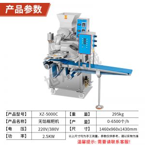 XZ-5000C糍粑机,软糯细腻、省时省力,不锈钢糍粑机。智能控制面板,智能内芯控制,可自由调节输送,切刀和打饼的时间。拍扁刀切功能,具备气缸打饼以及气缸切刀的功能、又薄又准确、可制作长条形的产品。
