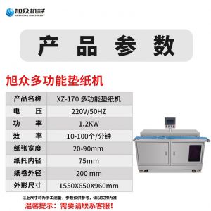 XZ-170多功能垫纸机,适用于大规模生产多功能垫纸机适用于包子、馒头、豆包等需要垫包纸的食。伺服控制、垫纸长度可调整。高效垫纸告别人工萝卜视频高清观看免费下载牌ⅩZ-170多功能垫纸机适用于规模生产的食品企业制作黄色网站萝卜视频、馒头等食品的自动垫包纸设备。