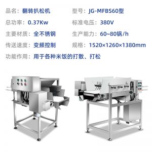 名称智能米饭扒松机-翻转扒松机 电源380V 功率0.37Kw 产量60~80锅/h 尺寸1520x1260x1380mm 重量请咨询销售员 规格请咨询销售员 其他