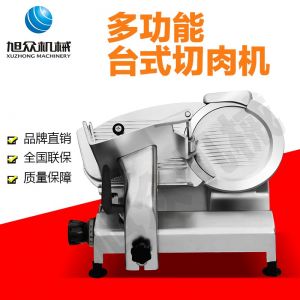 台式全自动切片机,适合切无骨肉类和其他类似榨菜带有弹性的食物,把原材料肉切成肉片,并可自动成卷状。可切牛肉片、羊肉片等