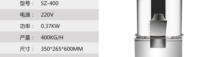 名称SZ-400刹菜机 电源220v 功率0.37kw 产量400千克/小时 尺寸350*265*600mm 重量21kg 规格 其他