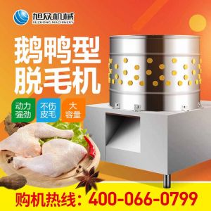 鹅鸭型脱毛机,本机用于鸡、鸭、鹅宰杀后的自动脱毛,还可用于脱姜皮、脱马铃薯皮、脱鱼鳞等农产品。本机操作简单,省力、省时间、工作效率相当于十多个人的手工劳动。