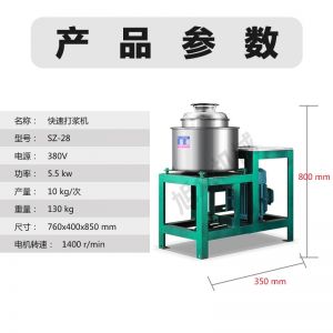 名称SZ-28型高速肉丸打浆机 电源380V 功率5.5KW 产量10kg/次 尺寸760*400*850mm 重量130KG 规格 其他