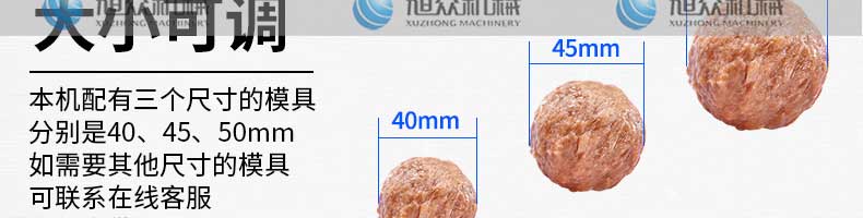XZ-605S肉丸成型机,大直径肉丸成型机,主要生产大肉丸、狮子头等可订做30-60mm的规格。轻松做好美味丸子解放双手,轻松享受创业财富!