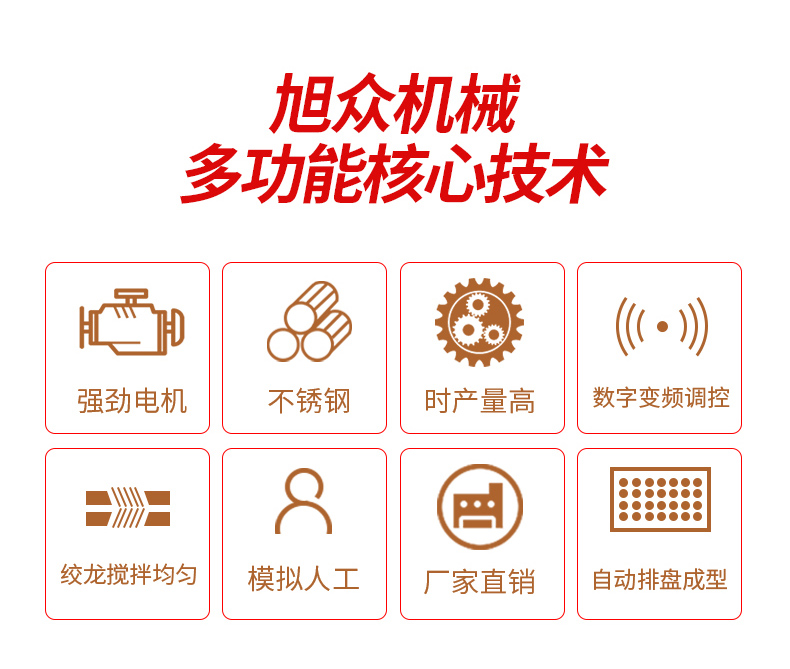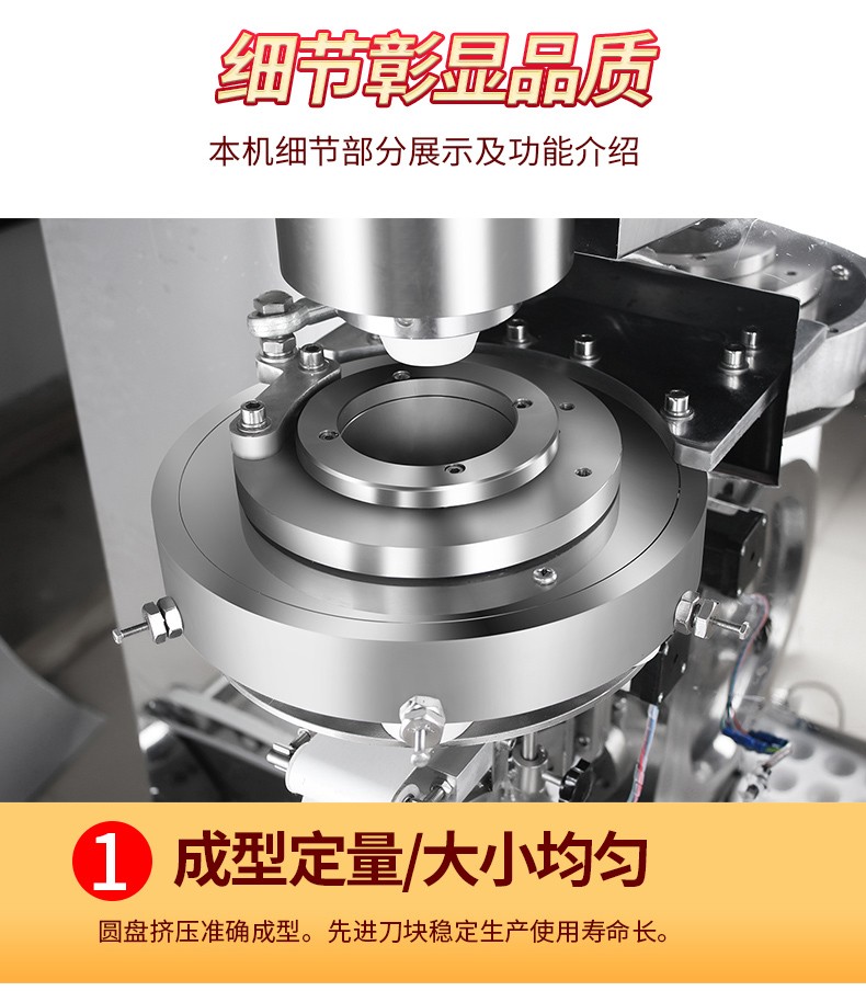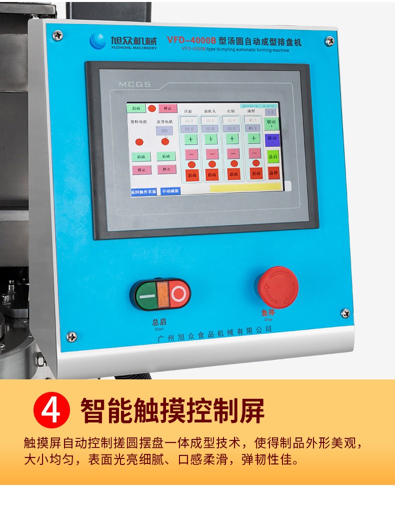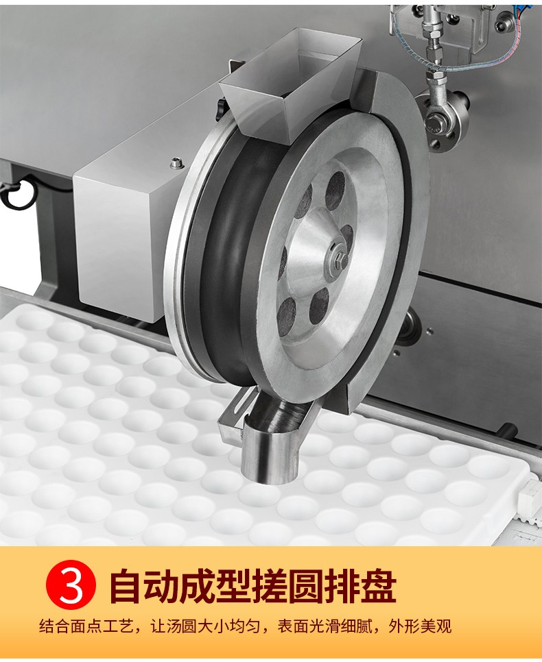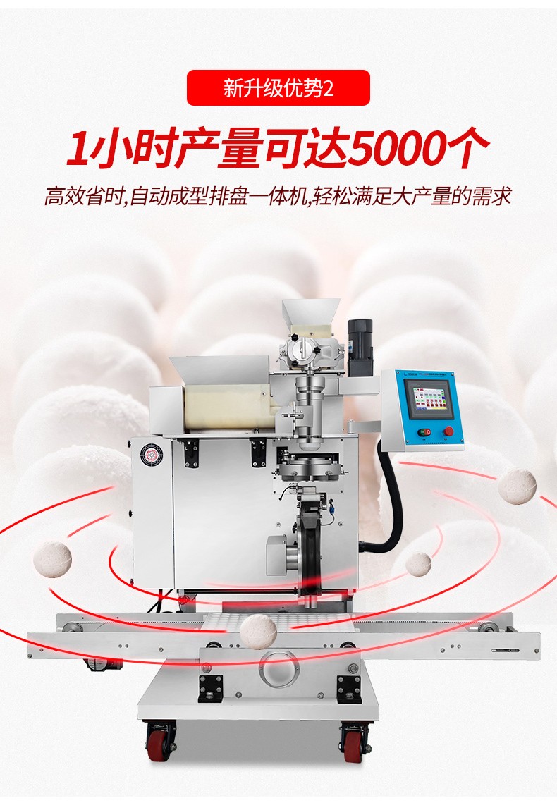 ◆触摸屏自动控制搓圆摆盘一体成型技术,使得制品外形美观,大小均匀,表面光亮细腻、口感柔滑,弹韧性佳。