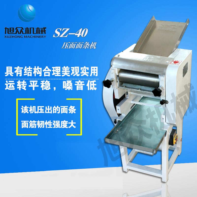 SZ40、SZ60压面面条机萝卜视频在线视频,本机压面、揉面一机两用,用于制作面条、云吞皮、糕点、面点等食品,生产的产品韧性大、耐煮、不易断,适合于宾馆、饭店、食堂、面包厂及各类面点加工单位或个体商户使用。