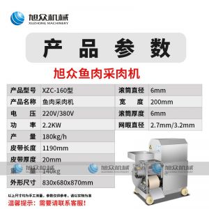 名称XZC-160型鱼肉采肉机 电源220/380V 功率2.2KW 产量联系销售员 尺寸830X680X870mm 重量140kg 规格联系销售员 其他